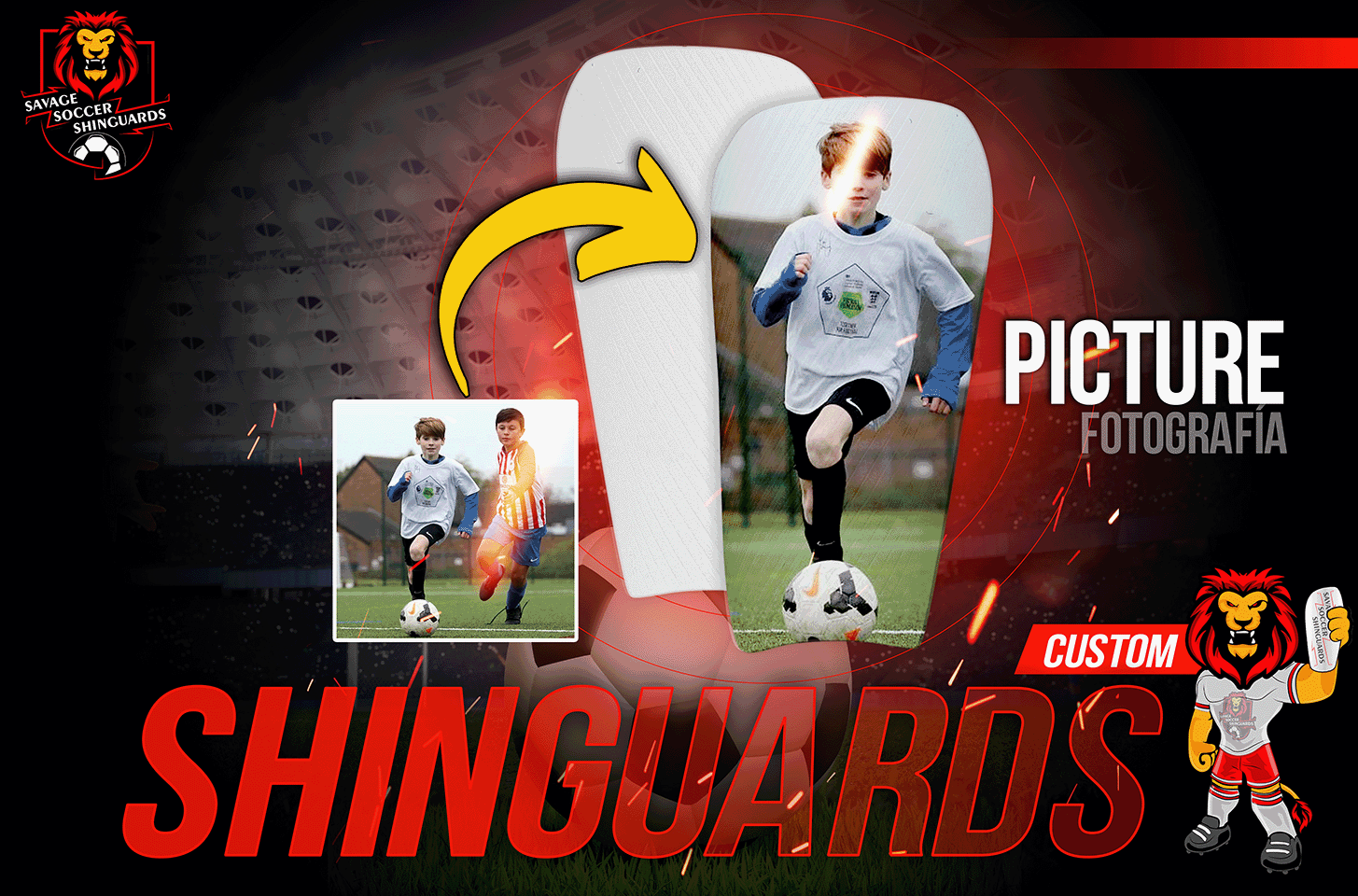 DESIGN THEM FOR MEOur team will customize your shinguards with a unique design,just email Us your desire pictures,numbers,color or badges and We'll email you a mock up.